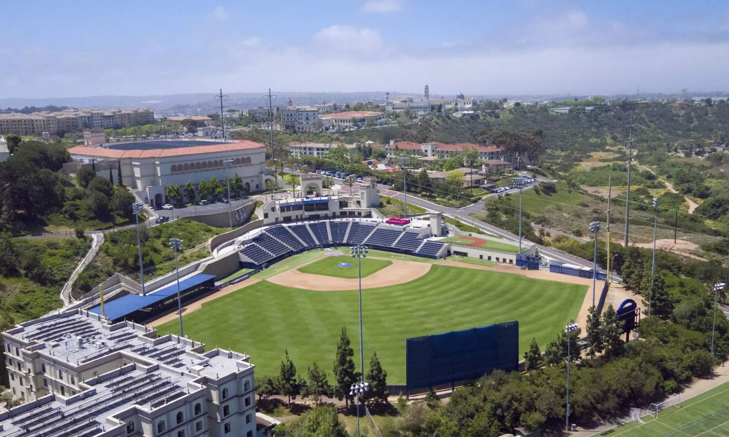 The University of San Diego (USD) is a private university located in San Diego, California. The campus is known for its scenic setting, well-maintained facilities, and safe, walkable environment. All baseball camps take place on the USD campus and utilize designated baseball facilities and training areas. Campers remain in supervised areas throughout the day and are never asked to navigate the campus on their own.